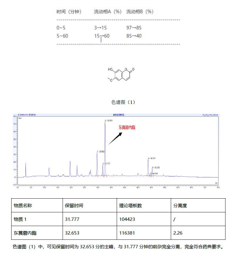 App ID: FLM-T250005 Titank C18-Plus 柱對(duì)顛茄流浸膏-特征圖譜的檢測(cè) 方法:《中國(guó)藥典》2020 版一部 色譜柱:Titank C18-Plus 5μ 250x4.6mm(貨號(hào):FMG-0060-EONU) 流速:1mL/min 檢測(cè)器:UV 344nm 柱溫:25oC 樣品濃度:根據(jù)藥典配制進(jìn)樣量:10uL 流動(dòng)相:A:甲醇流動(dòng)相B:0.05%磷酸溶液 ![]() |